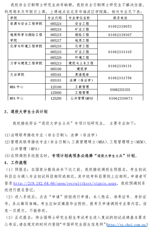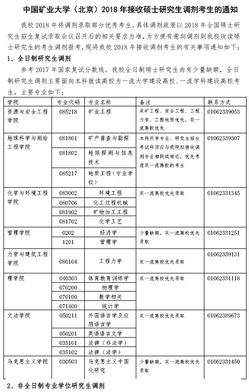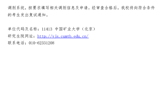中国矿业大学(北京)2018年硕士研究生调剂通知