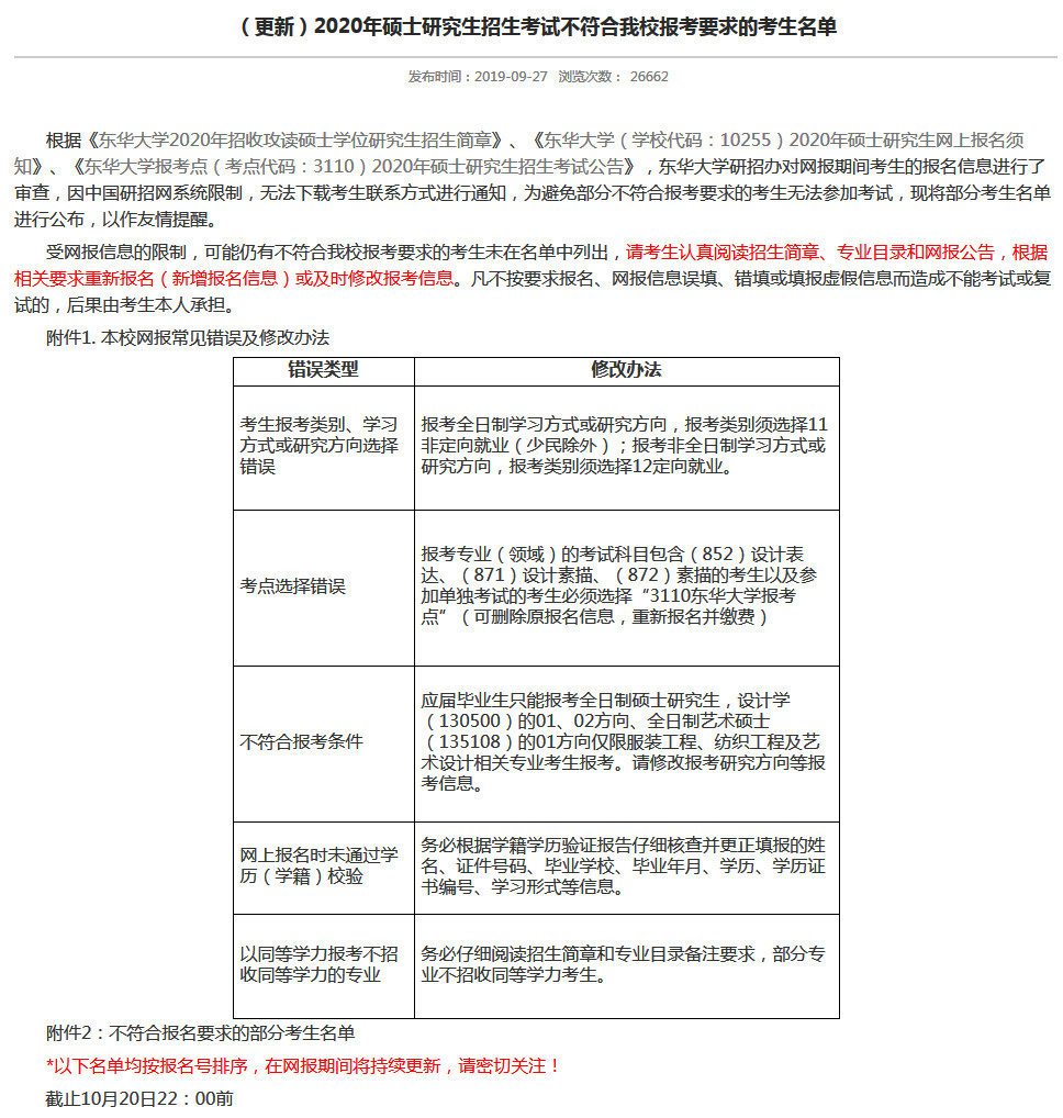 目前,多所高校均公布了报名错误名单(也是为考生操碎了心),并且在不断更新中。报完名的小伙伴也一定要及时关注报考院校官网,出现错误可以及时改正,一旦过了报名期限,就没有“后悔药”可吃了!