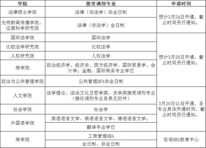 1.国际法学、比较法学、人权法学、商学院各接收调剂专业、公共管理专业(MPA)调剂考生复试时间为3月27日以后,具体安排另行通知。