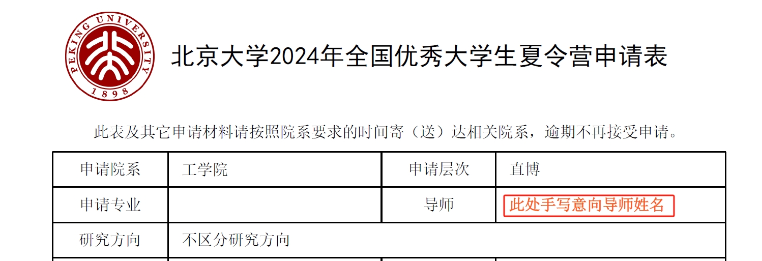(1)夏令营申请表(从报名系统打印,填报完成后,即可在系统中下载,本人手写签字,不能使用电子签名,手写意向导师姓名)