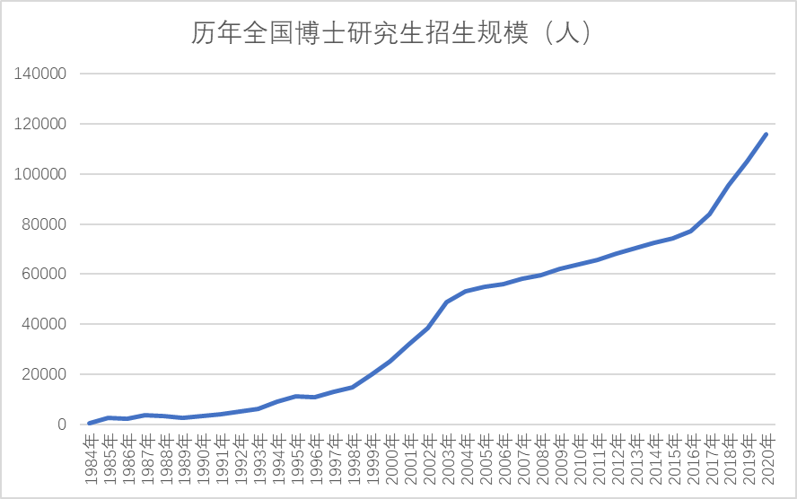 2021年全国教育事业发展统计公报披露,全年研究生招生117.65万人,比上年增加7万人,增长6.32%;其中,博士生招收12.58万人,硕士生共招收105.07万人,硕士研究生招生量约占总量的90%。