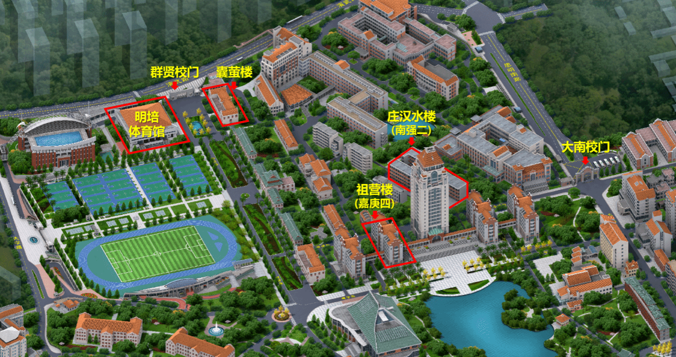 校外考生首次入校须刷身份证,此后人脸识别进出校门。各场次各相关考点校门(不含厦门大学访客中心)均可入校。校外考生的考场均安排在思明校区(厦门市思明区思明南路422号)庄汉水楼(南强二教学楼)考点,考点地点示意图: