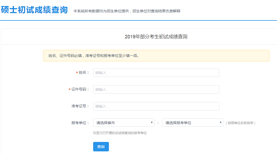 点击进入:中国研究生招生信息网硕士初试成绩查询