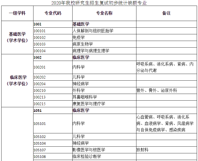 右江民族医学院2020年硕士研究生招生复试缺额专业预发布