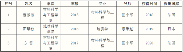 以下是近三年我校硕士研究生获得国家留学基金委公派攻读博士学位研究生资格情况