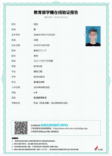 (五)《教育部学籍在线验证报告》(网上报名学籍校验未通过的应届本科毕业生提供)