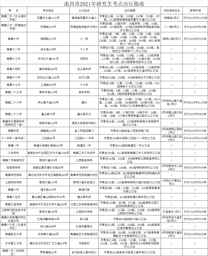 南昌市2021年硕士研究生招生考试考点出行指南