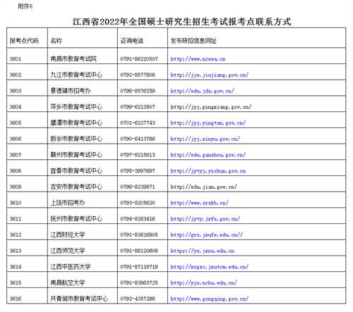 5. 江西省2022年全国硕士研究生招生考试报考点联系方式