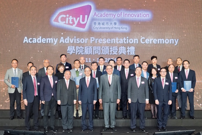 城大创新学院同时委任了22位学院顾问,他们为HK Tech 300的发展及城大创新学院的成立作出重大贡献。(图片来源:香港城市大学)