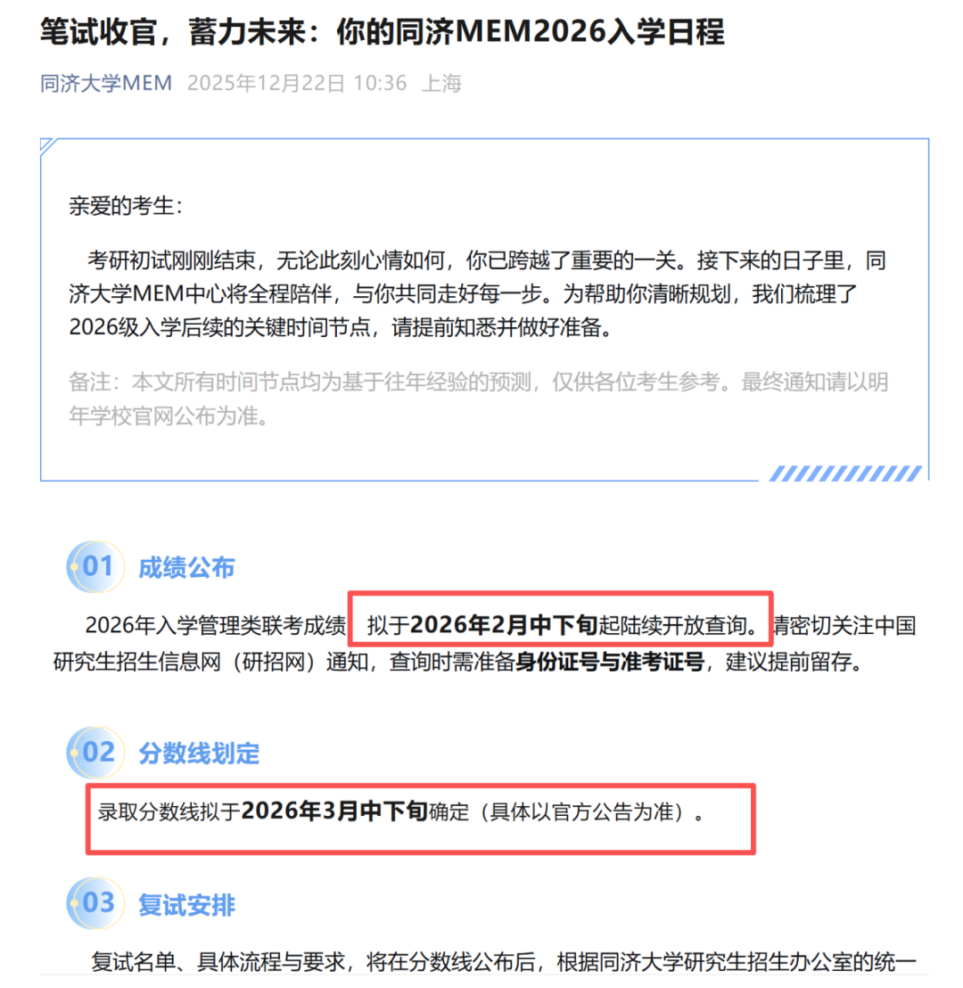 综合来看,26考研初试成绩大概率会在2月24日前后公布,不过最终还是要以官方的准确通知为准,小掌也会持续关注,第一时间给大家同步~