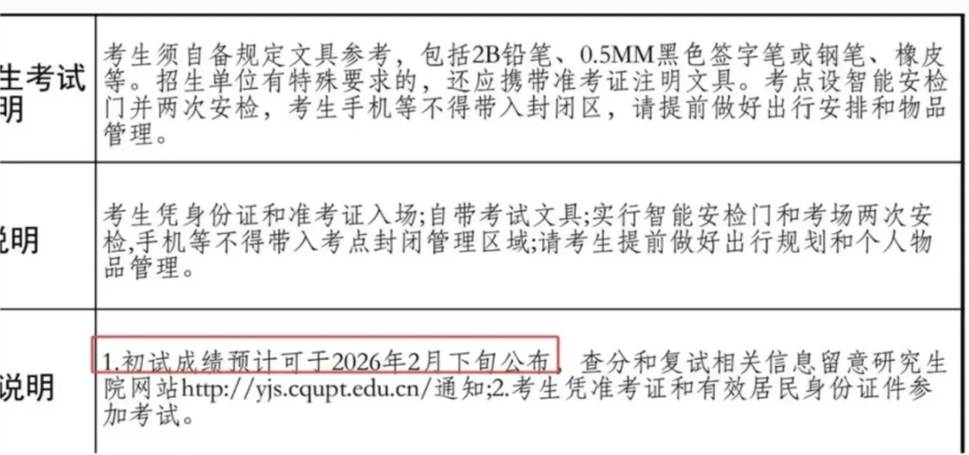 5.重庆邮电大学重庆邮电大学的初试成绩预计在2026年2月下旬公布,后续请关注学校官方发布的查询通道和具体时间。