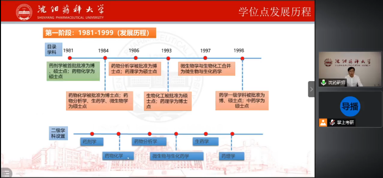 在本次评选中,沈阳药科大学通过宣传片介绍、政策解读的直播方式,为考生带来全面详细的招生政策解读,收获了考生的热情响应最终获得“最佳贡献奖”。直播活动中,沈阳药科大学副校长兼研究生院院长宋少江教授带来了干货满满的线上招生宣讲,讲解全面且详尽,为考生在考研报考的道路上指引方向,得到了广大考生的热切关注与高度认可。