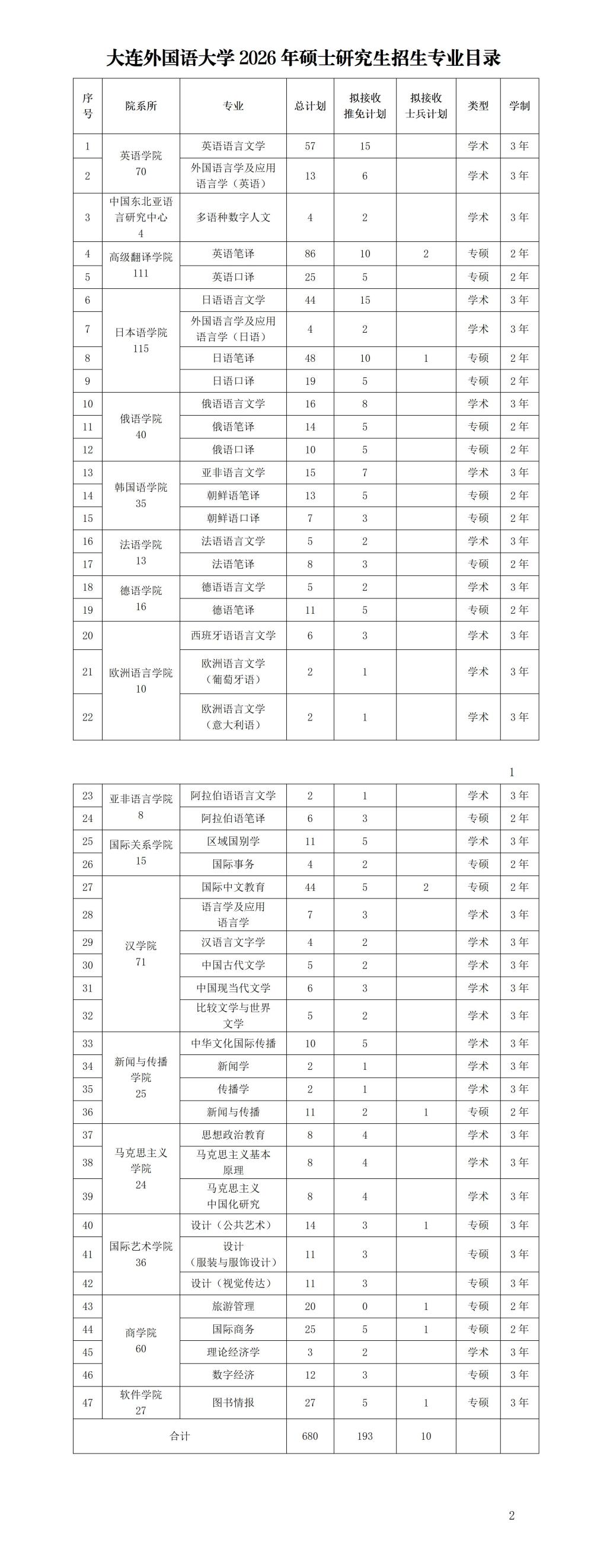 2026年大连外国语大学考研专业目录及考试科目
