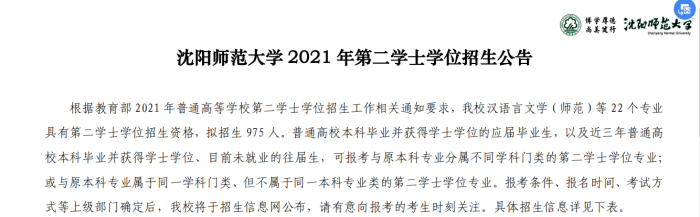 沈阳师范大学发布第二学士学位招生公告,其中有12个专业招收第二学士学位。