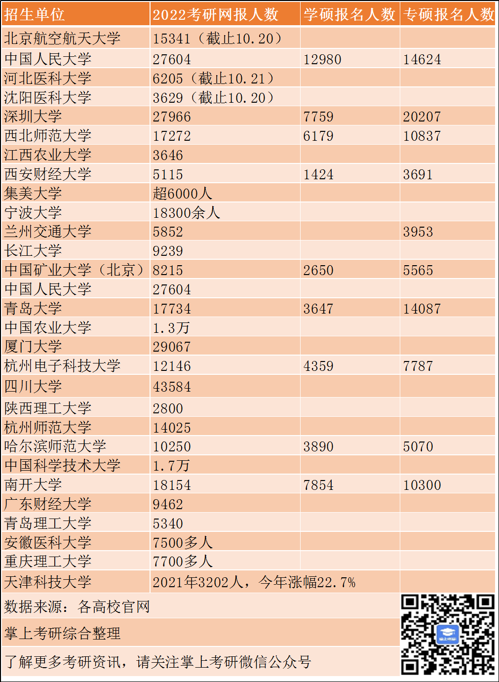 2022考研报名人数正在陆续公布中,这不,又有几所高校公布了最新数据。看看有你报考的院校吗?