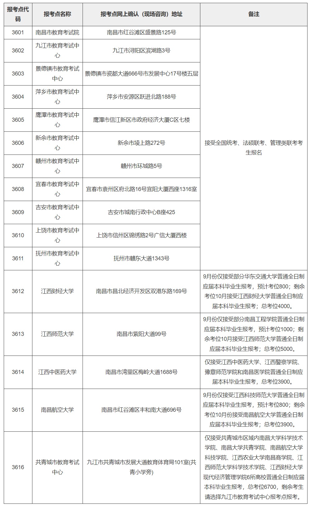 注:报考点地址如有变动,以各报考点最新公告为准。