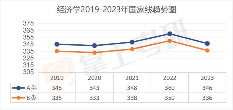 考研分数线|经济学2019-2023年国家线趋势图(学术学位)