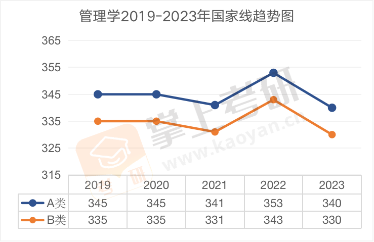 考研分数线|管理学2019-2023年国家线趋势图(学术学位)