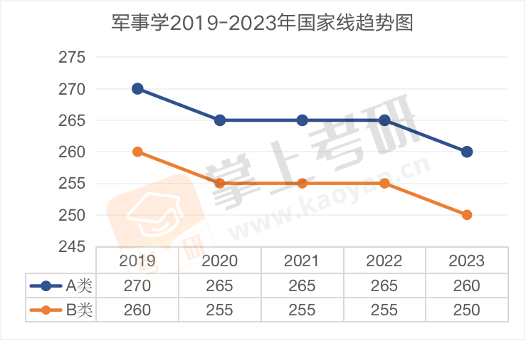 考研分数线|军事学2019-2023年国家线趋势图(学术学位)