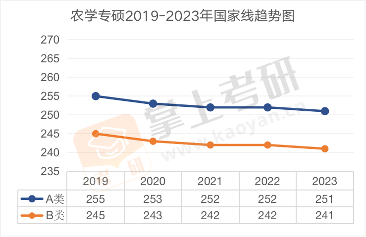考研分数线|农学专硕2019-2023年国家线趋势图(专业学位)