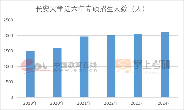 长安大学近六年来招收专业硕士人数逐年增长。从2019年招收专硕1490人,到2024年招收专硕2104人,六年间扩招专业硕士614人。