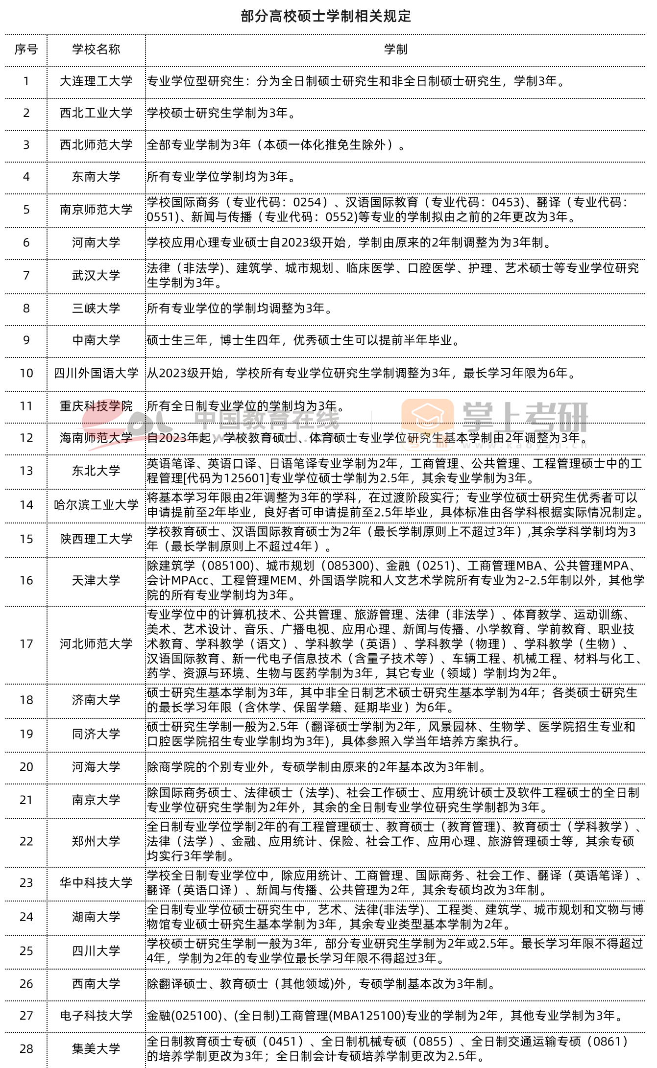 修业年限作为研究生教育的重要制度,更是关系到研究生培养的整体规划。为提高培养质量,保障专业硕士有足够的实习实践与项目实践经验,高校普遍将专业硕士的学制从2年或2.5年延长至3年。