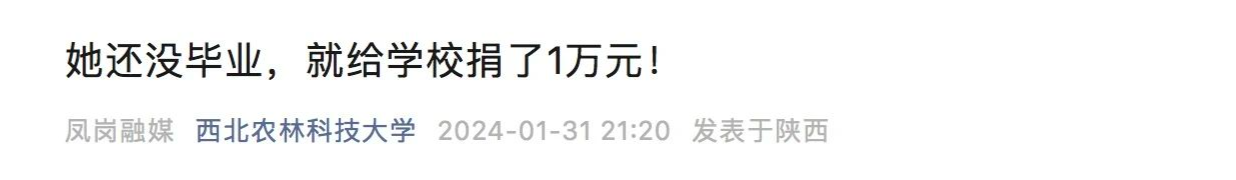 1月31日,西北农林科技大学发文介绍了该校信息学院2020级本科生王晗羽的经历。