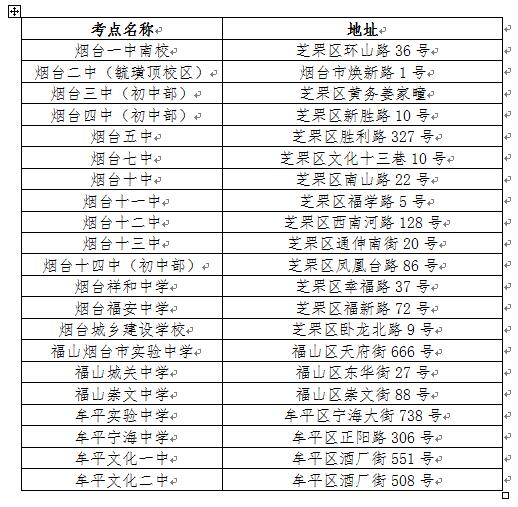 烟台市2018年研究生考试考点分布一览表