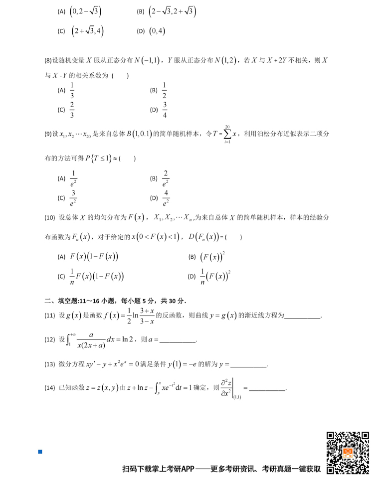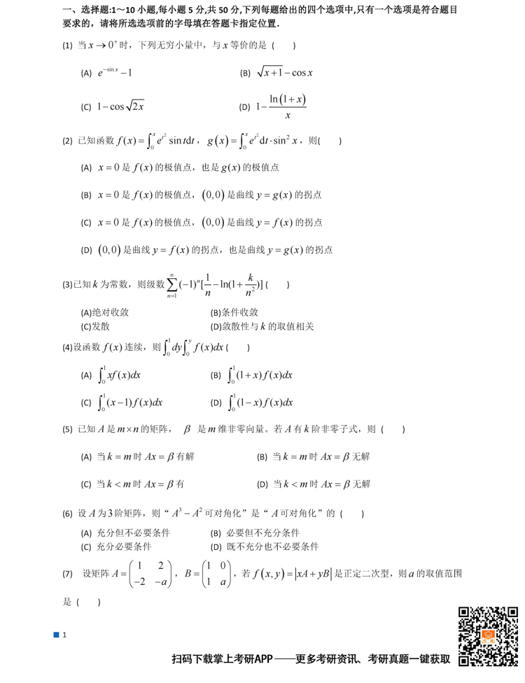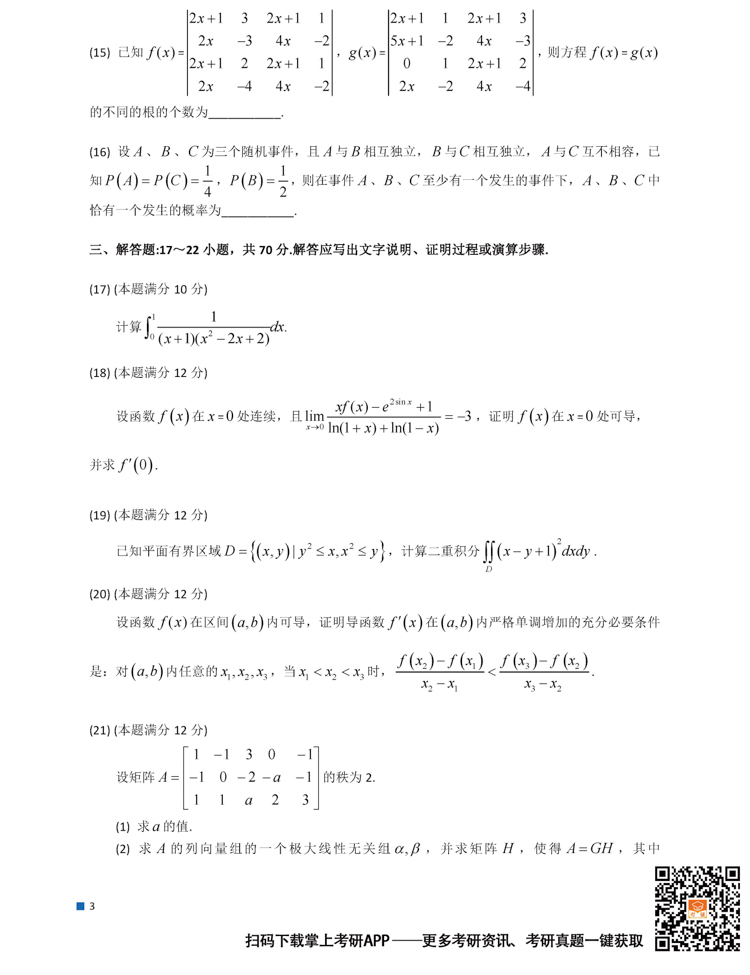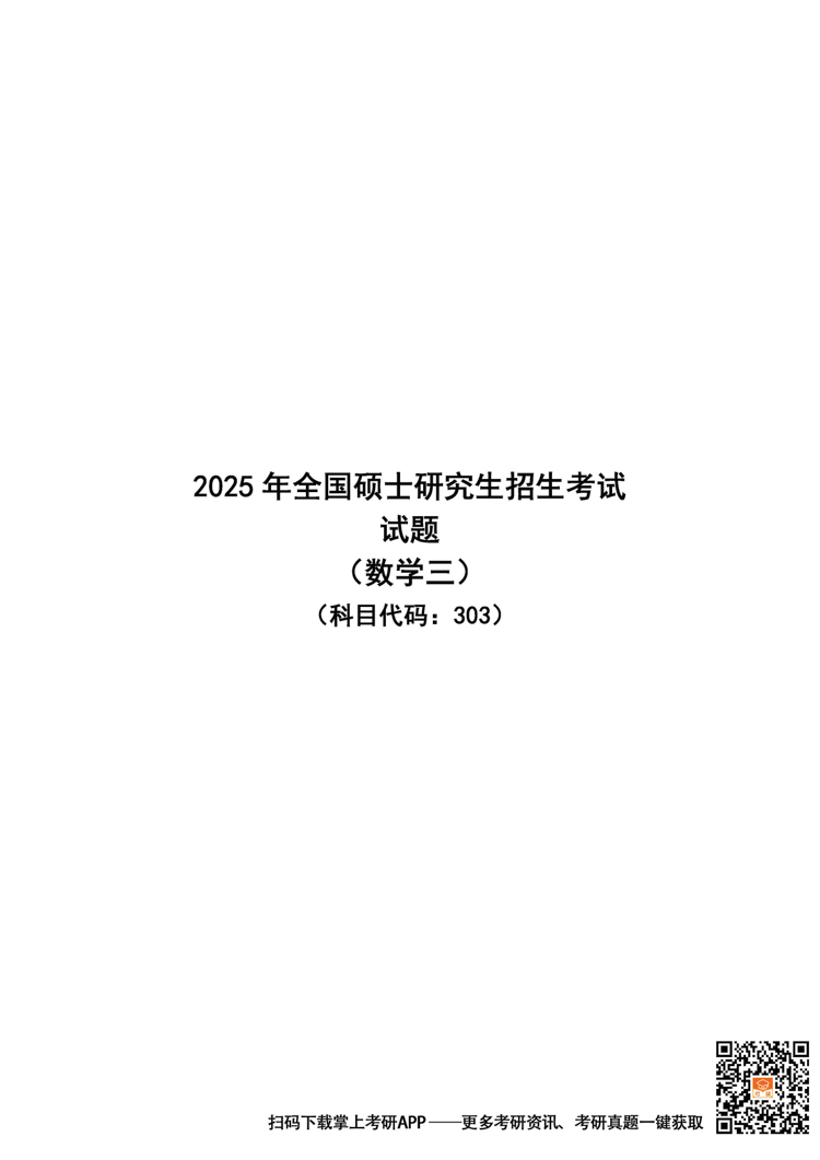 2026考研备考进行中,中国教育在线为大家整理了2025年考研303数学(三)真题及答案。欢迎下载“掌上考研APP”,获取更多考研真题及答案解析。