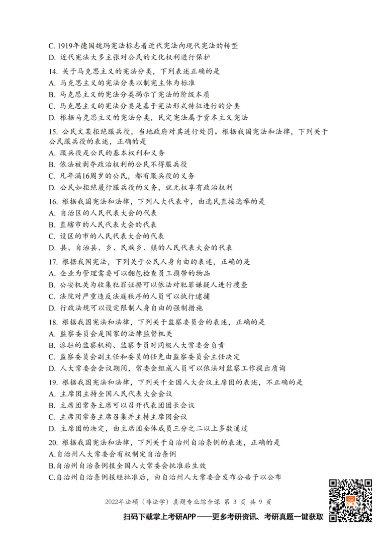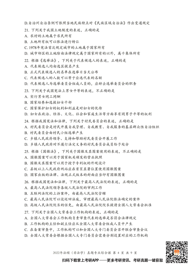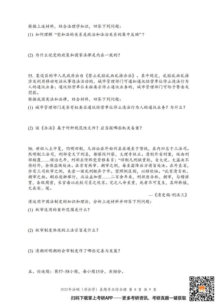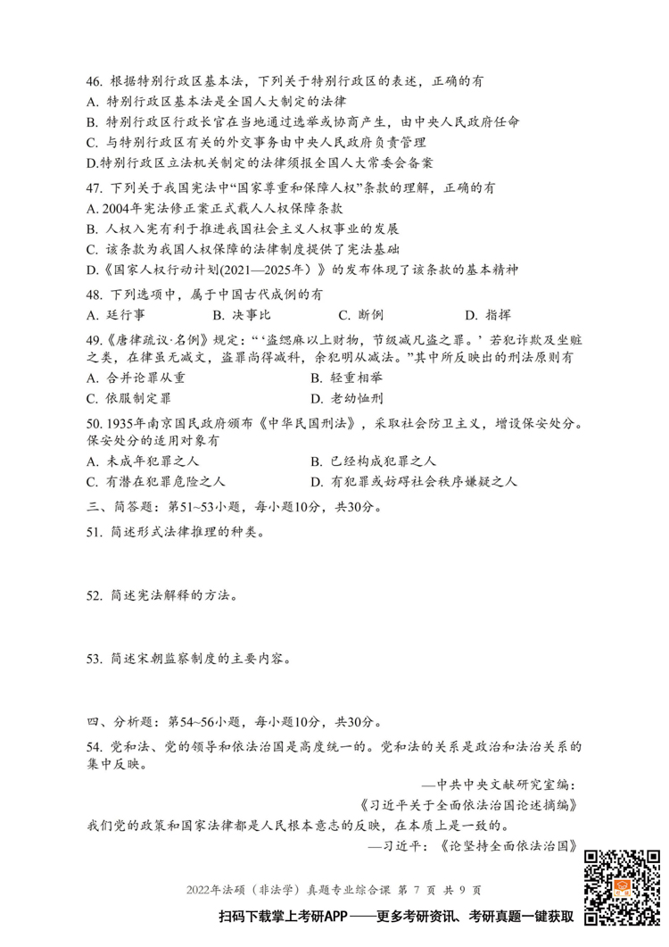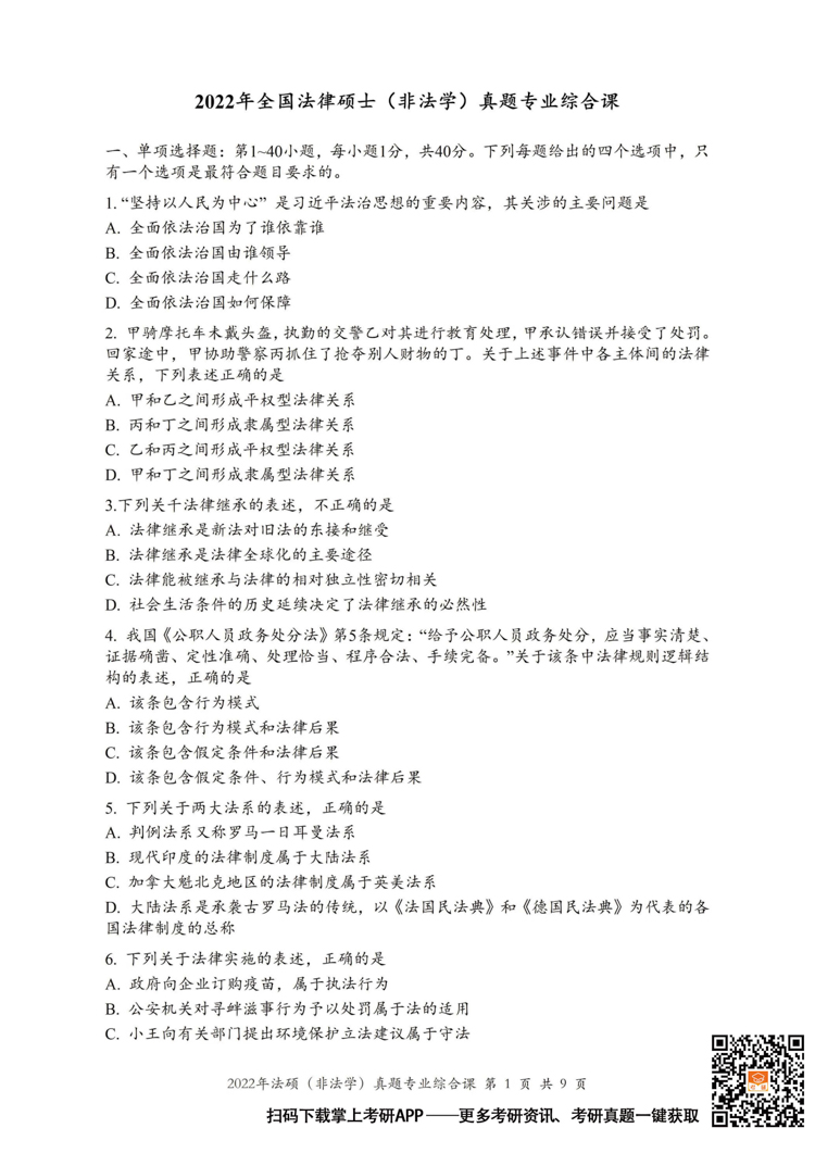 2026考研备考进行中,中国教育在线为大家整理了2022年考研498法律硕士综合(非法学)真题及答案。欢迎下载“掌上考研APP”,获取更多考研真题及答案解析。
