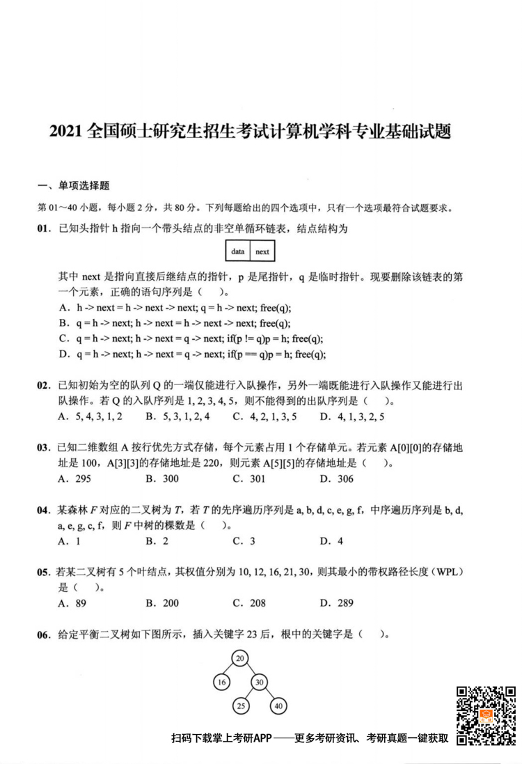 2026考研备考进行中,中国教育在线为大家整理了2021年考研408计算机学科专业基础综合真题及答案。欢迎下载“掌上考研APP”,获取更多考研真题及答案解析。