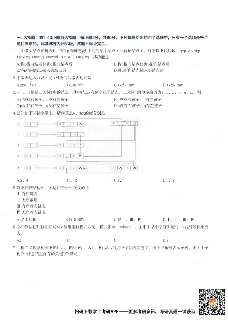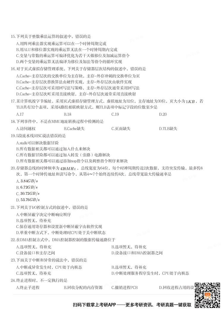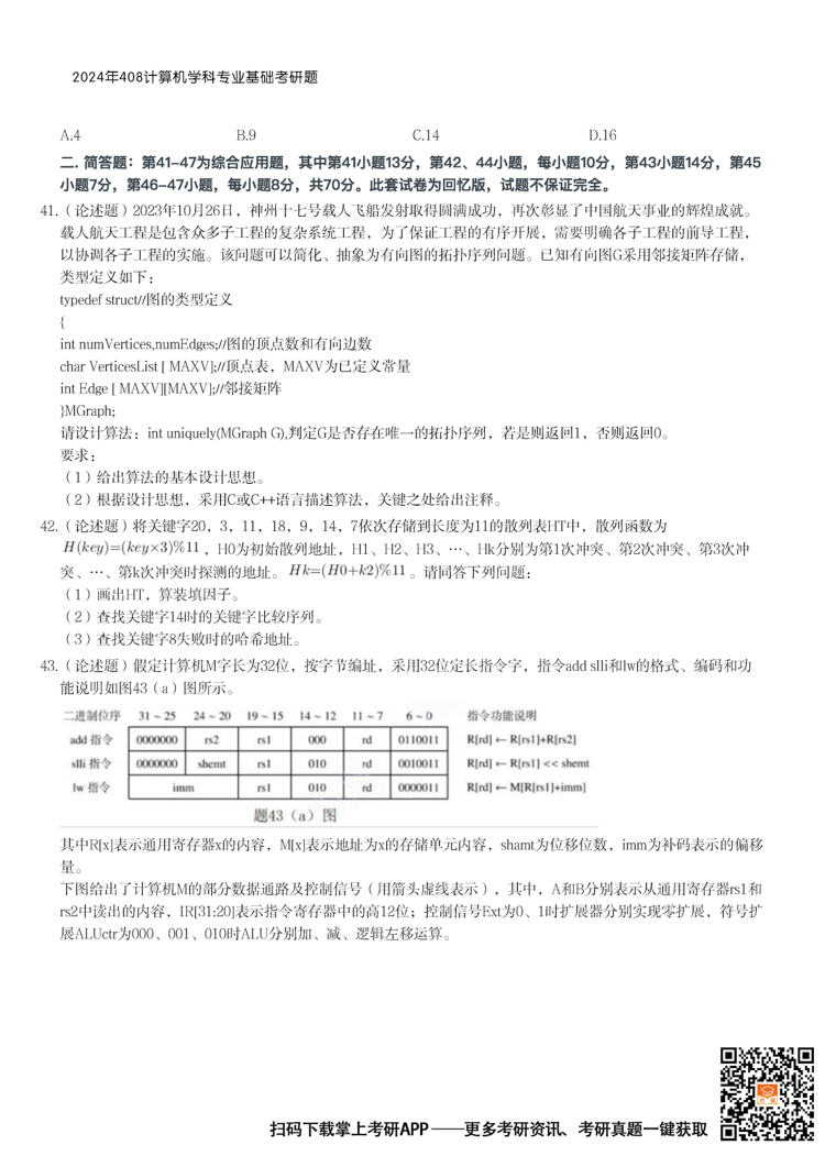2026考研备考进行中,中国教育在线为大家整理了2024年考研408计算机学科专业基础综合真题。欢迎下载“掌上考研APP”,获取更多考研真题及答案解析。