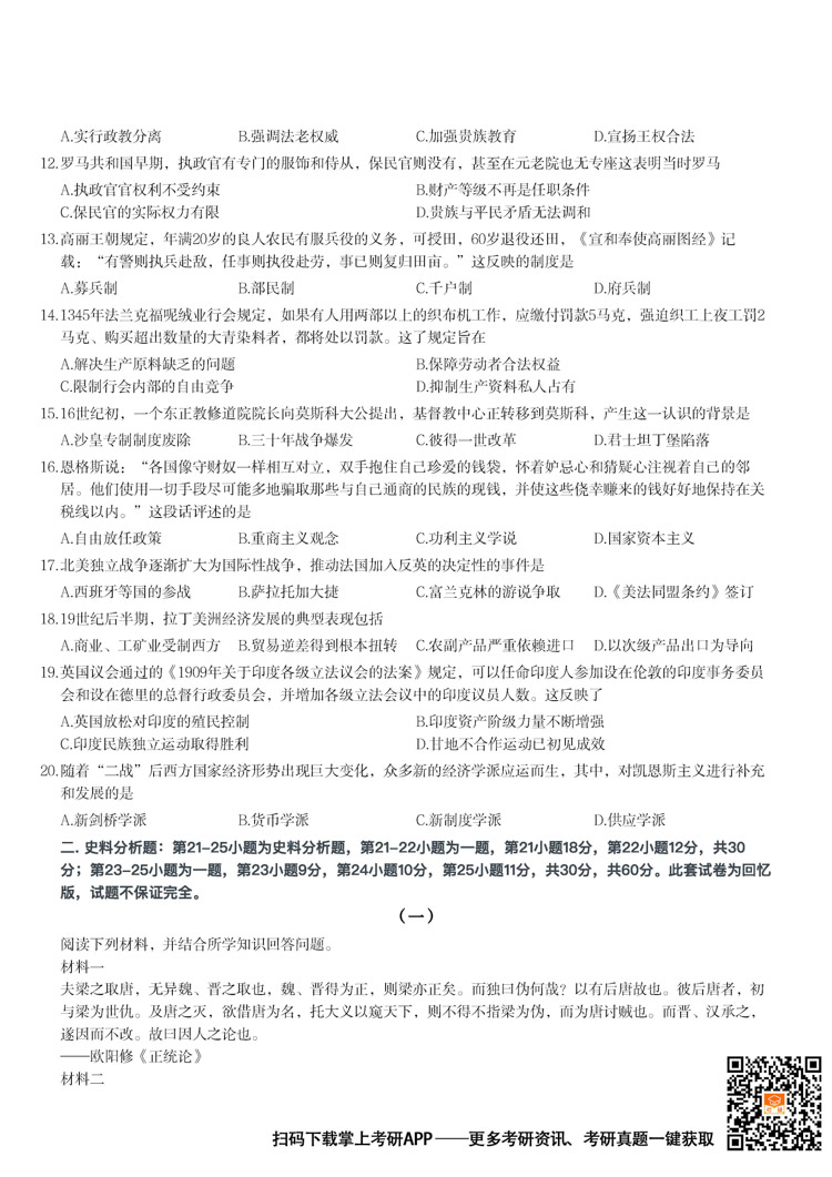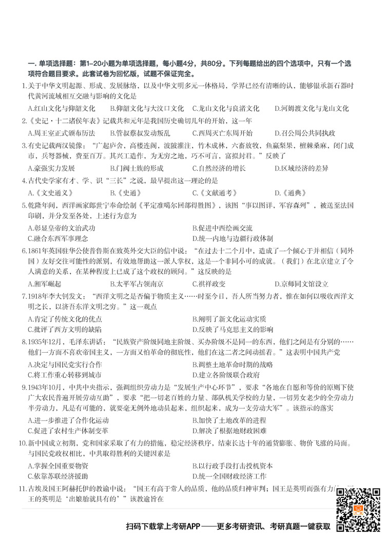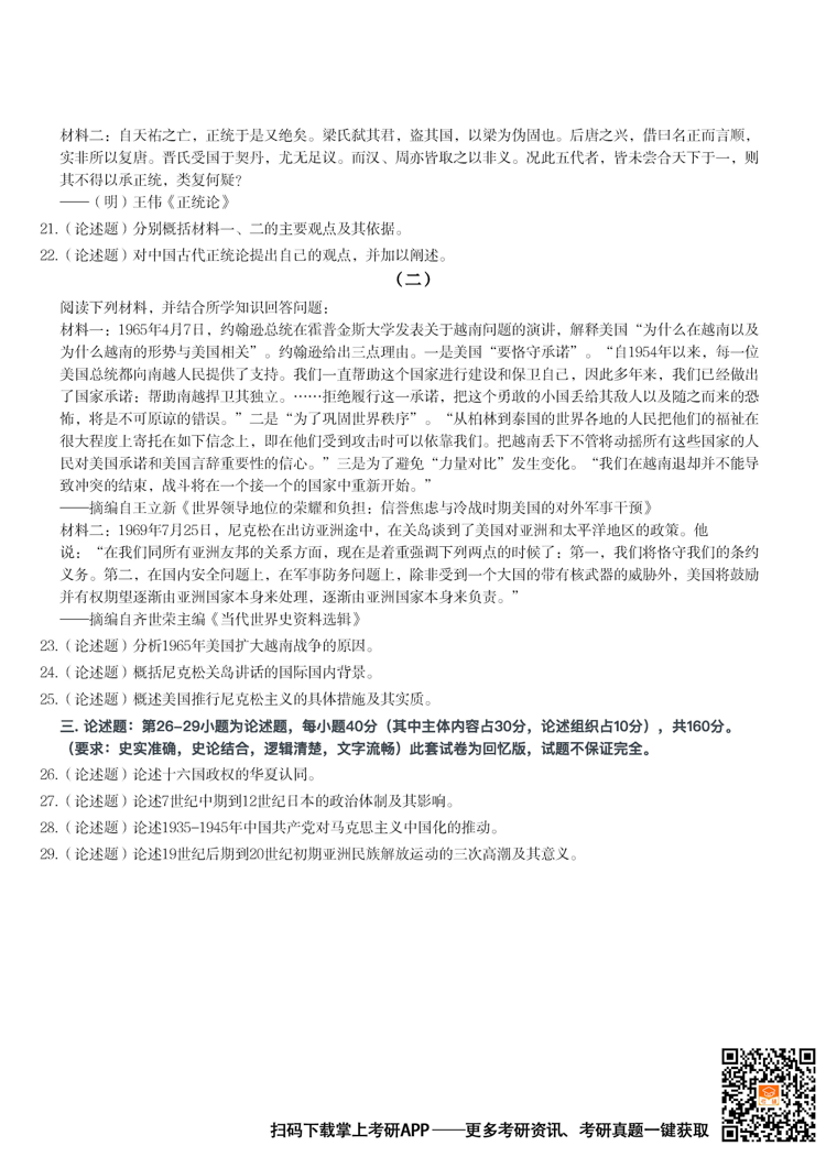 2026考研备考进行中,中国教育在线为大家整理了2024年考研313历史学专业基础真题。欢迎下载“掌上考研APP”,获取更多考研真题及答案解析。