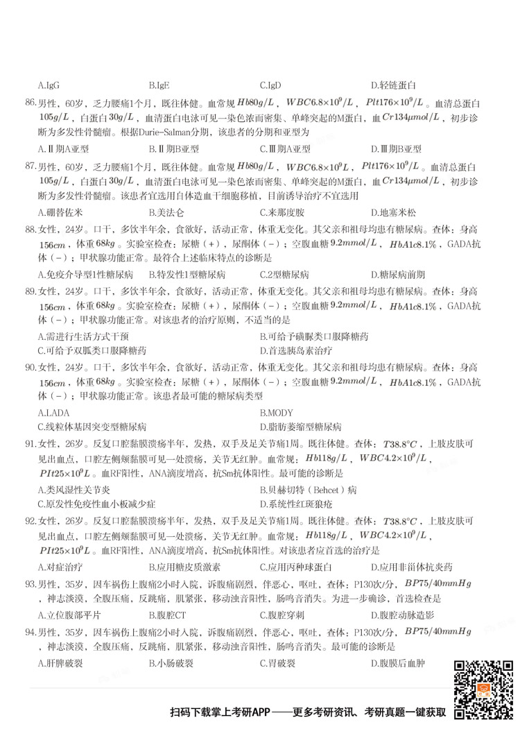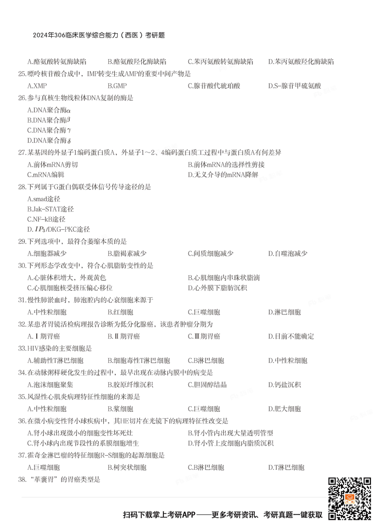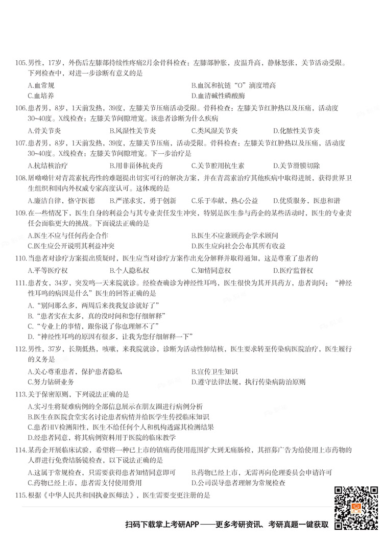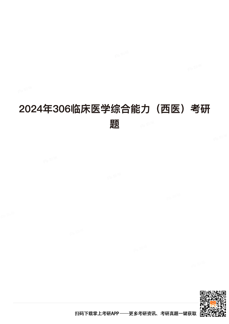 2026考研备考进行中,中国教育在线为大家整理了2024年考研306临床医学综合能力(西医)真题。欢迎下载“掌上考研APP”,获取更多考研真题及答案解析。