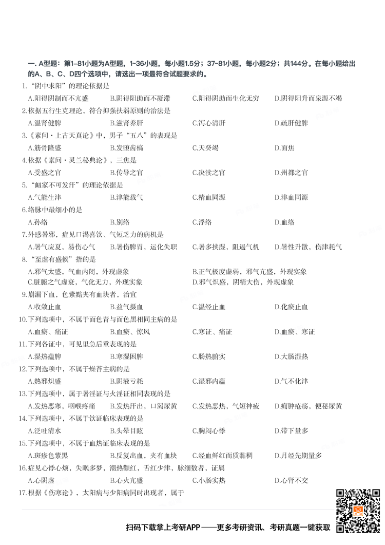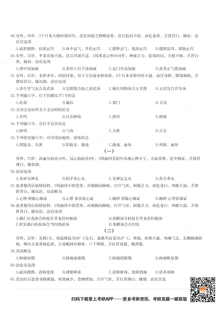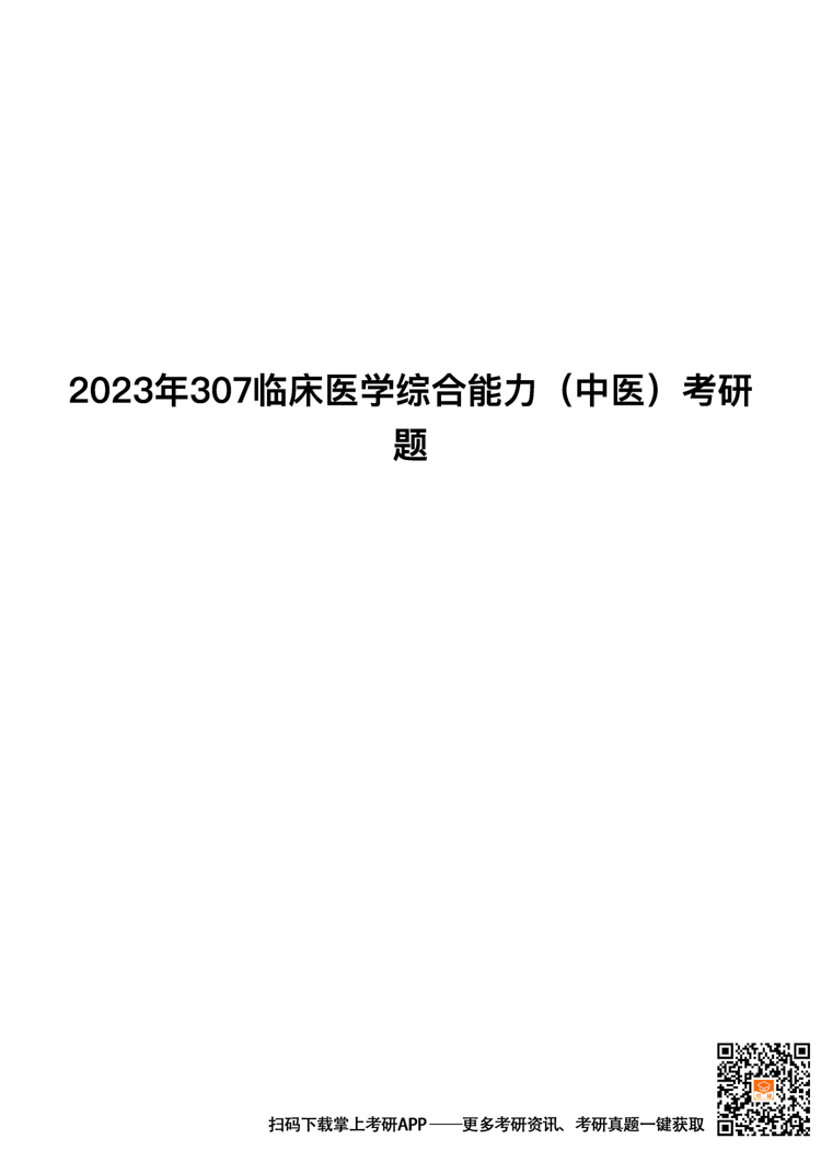 2026考研备考进行中,中国教育在线为大家整理了2023年考研307临床医学综合能力(中医)真题。欢迎下载“掌上考研APP”,获取更多考研真题及答案解析。