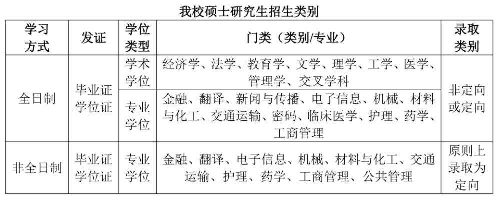 注:(1)应届本科毕业生、自学考试和网络教育等届时可毕业本科生须在录取当年入学前(以学校当年开学报到时间为准)取得国家承认的国(境)内高校本科毕业证书或教育部留学服务中心出具的《国(境)外学历学位认证书》,否则录取资格无效。