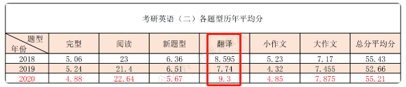 虽然说没有官方消息佐证,而且判卷也没有完全结束,但是小编参考了往年教育部发的平均分发现,英语一的翻译真心要命。。。不过同学只说了3分,却没说小分,可能也在波动范围内: