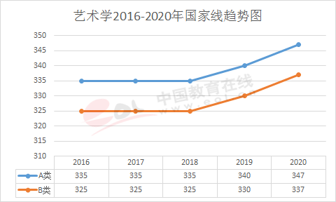 考研分数线|艺术学2016-2020年国家线趋势图(学术学位)