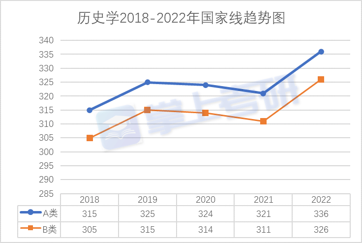 考研分数线|历史学2018-2022年国家线趋势图(学术学位)