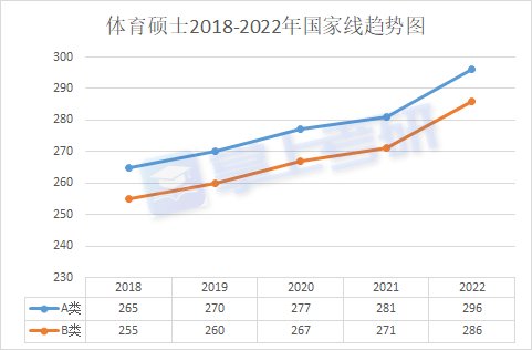 考研分数线|体育硕士2018-2022年国家线趋势图