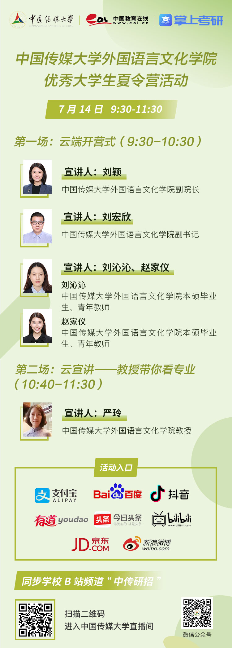7月12日14点起,中国传媒大学各场宣讲会将陆续举行~