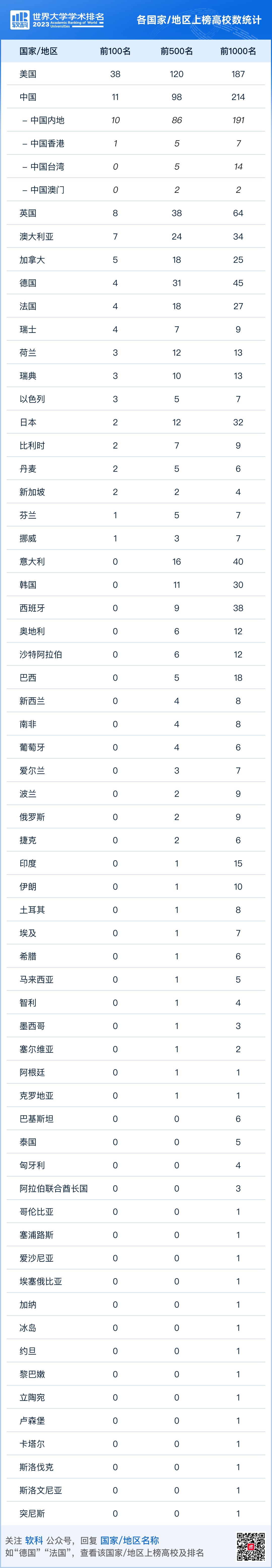 在全球1000强大学榜单中,今年中国内地共有191所高校上榜,较去年增加28所,历史首次超过美国上榜高校数(187所),位列世界第一。显示出中国研究型大学群体的学术实力和国际影响力在持续攀升。